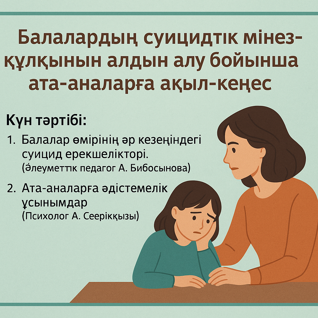 «Балалардың суицидтік мінез-құлқының алдын алу бойынша ата-аналарға ақыл-кеңес»